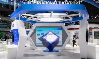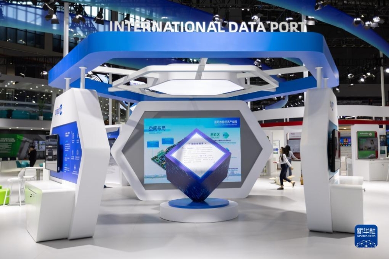 這是11月2日在技術(shù)裝備展區(qū)臨港展示區(qū)拍攝的國際數(shù)據(jù)經(jīng)濟(jì)產(chǎn)業(yè)園展臺(tái)。