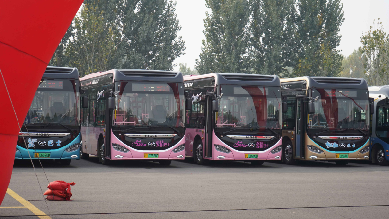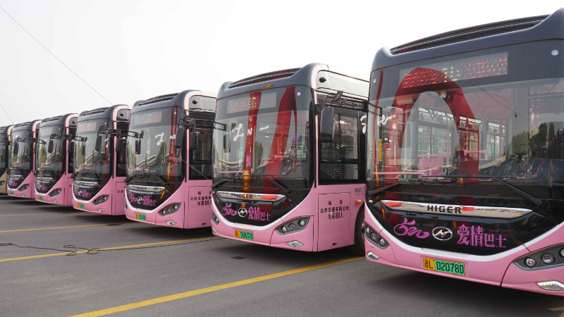 愛老敬老專線給予老人更多呵護關(guān)懷;文旅巴士帶你一覽臨汾城市特色;還有一輛輛520愛情巴士粉紅色內(nèi)外涂裝,駕駛員是清一色女司機,浪漫時尚愛意滿滿,乘坐其中被幸福全面擁抱;而20多輛微循環(huán)小巴個個小巧可愛,將帶你在路面較窄、車流量較大的道路上自如穿梭。一輛輛蘇州金龍海格客車七彩絢麗的外觀設(shè)計、精致溫馨的車廂空間,還有各種高科技智能加持,讓人目不暇接,添彩城市幸福出行。