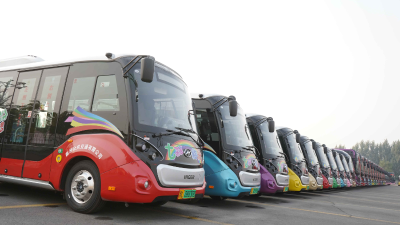 高顏值!新體驗!近日,64輛外觀靚麗、內(nèi)飾精美的蘇州金龍純電公交正式投入山西臨汾。該批巴士擁有著紅、綠、藍、紫、粉等多種配色,根據(jù)顏色被分別投放至文旅專線、愛情巴士專線、愛老敬老專線以及城市微循環(huán)公交線路中,五彩斑斕的色彩化身“七彩巴士”,在方便百姓出行的同時,打造有亮點、有特色、有溫度的臨汾公交品牌。