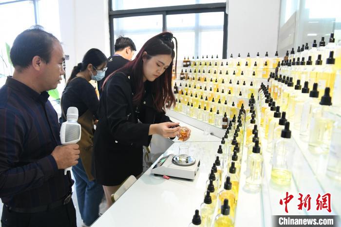 10月31日,兩岸媒體記者體驗(yàn)香水調(diào)制過程。中新社記者 蔣雪林 攝