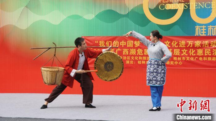 中新網(wǎng)桂林11月4日電 (唐蔚晴)“我覺得惠民演出的表演形式特別好,能讓市民游客近距離地觀賞到廣西文場(chǎng)和桂林漁鼓這類非物質(zhì)文化遺產(chǎn),我希望我們傳承的東西能讓大家都知道?!睗O鼓《除五瘴》演員章藝凡11月3日在廣西桂林地方藝術(shù)展演結(jié)束后感慨道。