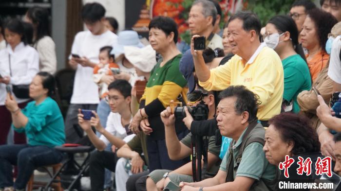 彩調(diào)劇《雙解差》表演拉開了整場(chǎng)展演的序幕,演員們生動(dòng)演繹出一對(duì)玩世不恭的解差守城門時(shí)發(fā)生的一系列故事。詼諧幽默的表演引得現(xiàn)場(chǎng)觀眾駐足而觀,不少市民掏出手機(jī)拍攝留念。隨后,桂劇《太君辭朝》、漁鼓《除五瘴》、彩調(diào)《打銅鑼》接連上演,引得掌聲陣陣。
