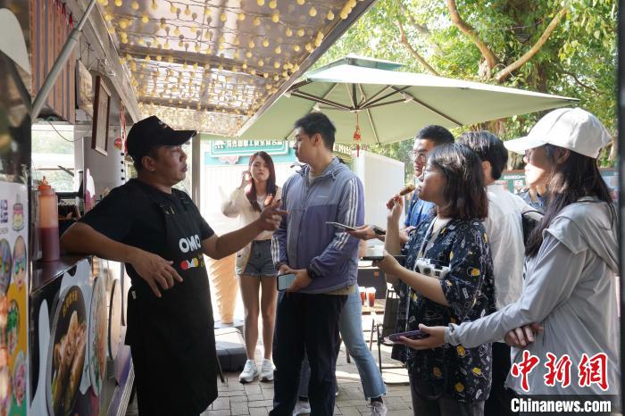 在南寧市青秀山風(fēng)景區(qū)東盟友誼園里,一輛名為“南寧圓夢號”的餐車特別吸引人,賴俊宏二次創(chuàng)業(yè)的場所就在這輛餐車上。近日,2023年兩岸媒體壯美廣西行活動采訪團(tuán)到訪時,賴俊宏正在忙著招呼來此購買臺灣美食的游客。