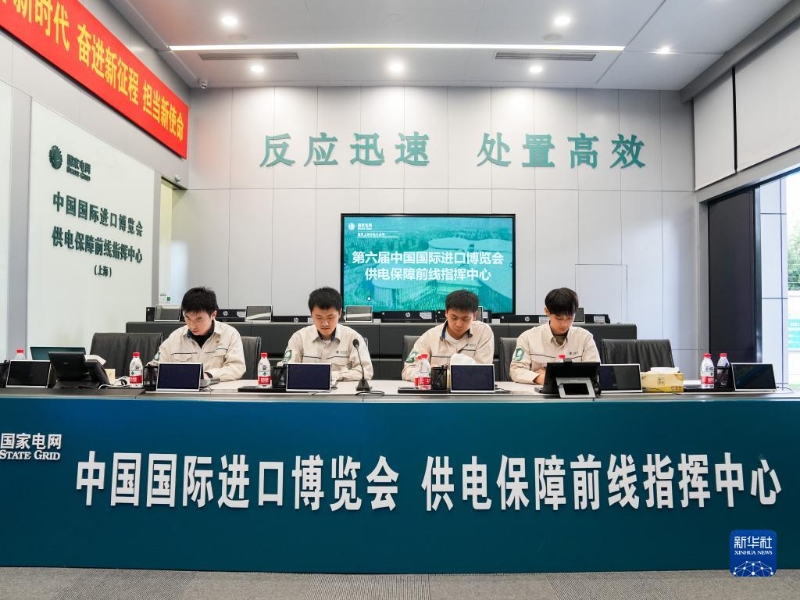 11月4日,國網(wǎng)上海青浦供電公司工作人員在進(jìn)博會供電保障前線指揮中心內(nèi)工作。