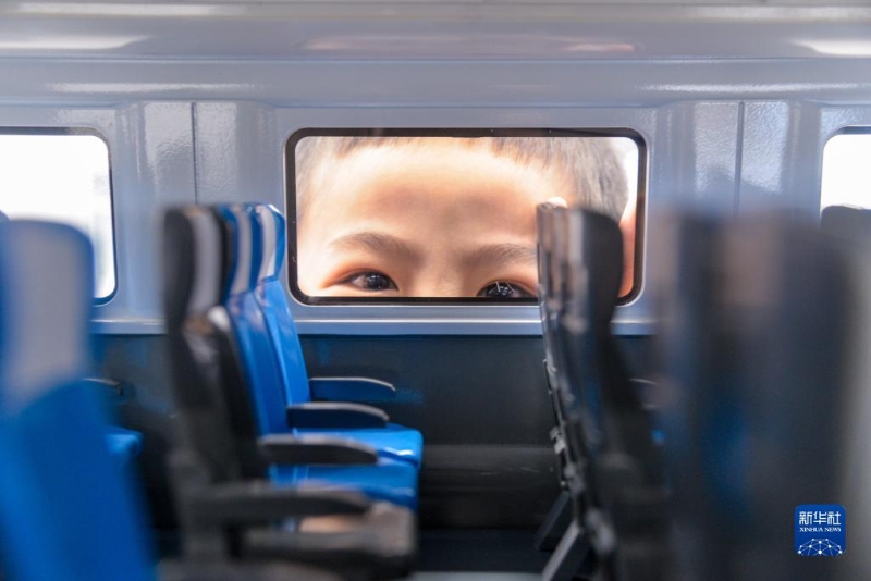 11月5日,在印度尼西亞雅加達(dá)哈利姆站候車大廳,一名小朋友在查看一個(gè)雅萬高鐵高速動(dòng)車組模型的內(nèi)部構(gòu)造。