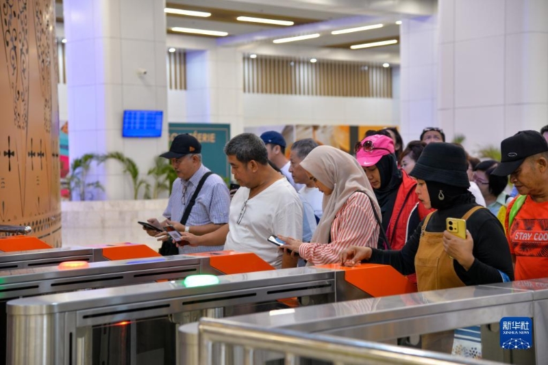 11月5日早,在印度尼西亞雅加達(dá)哈利姆站候車大廳,人們刷票準(zhǔn)備前往站臺(tái)乘坐當(dāng)日第一班高鐵。