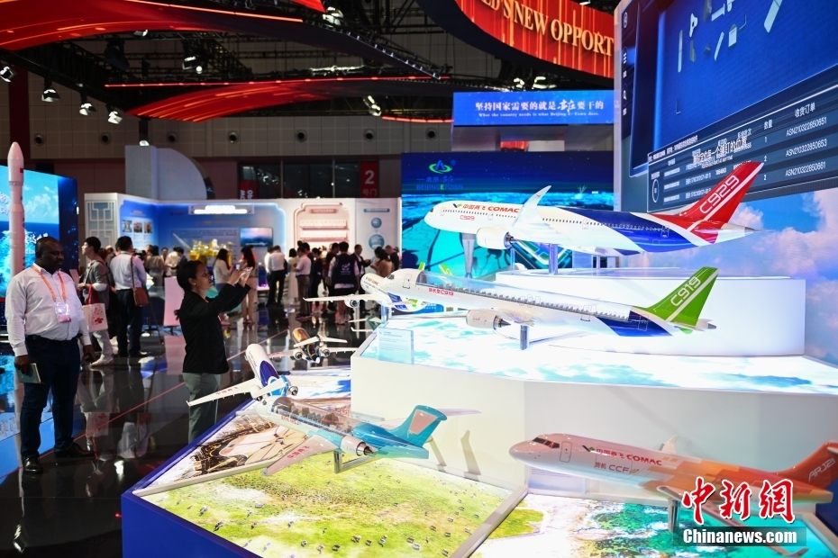 11月5日,觀眾在進博會中國館參觀拍攝C919飛機模型。當日,第六屆中國國際進口博覽會在上海開幕。中新社記者 田雨昊 攝