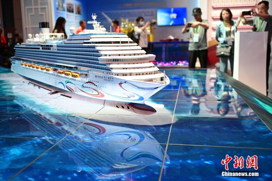 11月5日,觀眾在進博會中國館參觀拍攝愛達·魔都號郵輪模型。當日,第六屆中國國際進口博覽會在上海開幕。中新社記者 田雨昊 攝