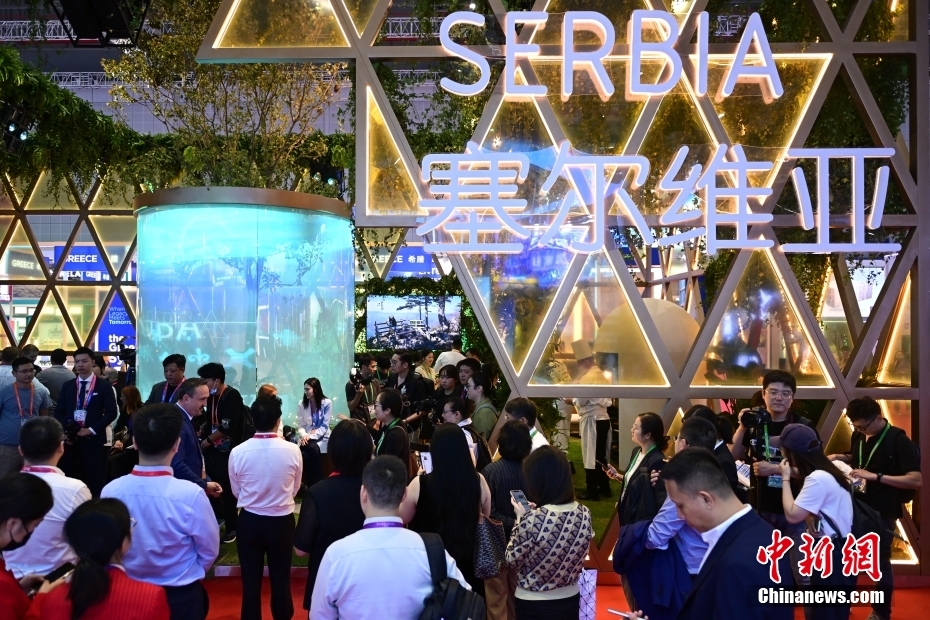 11月5日,進博會塞爾維亞館參觀者眾多。當日,第六屆中國國際進口博覽會在上海開幕,洪都拉斯、哈薩克斯坦、塞爾維亞、南非、越南等5國擔任主賓國。中新社記者 田雨昊 攝