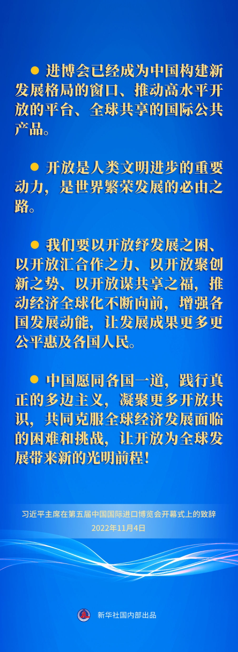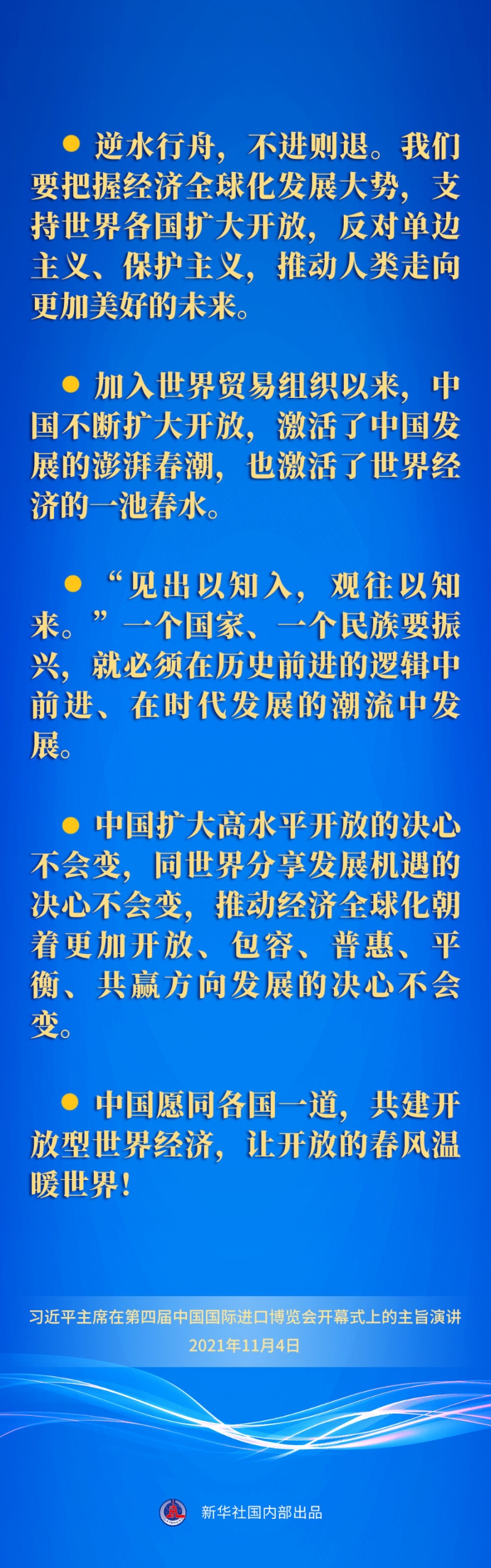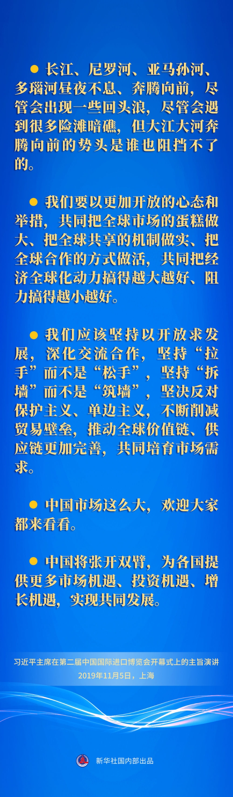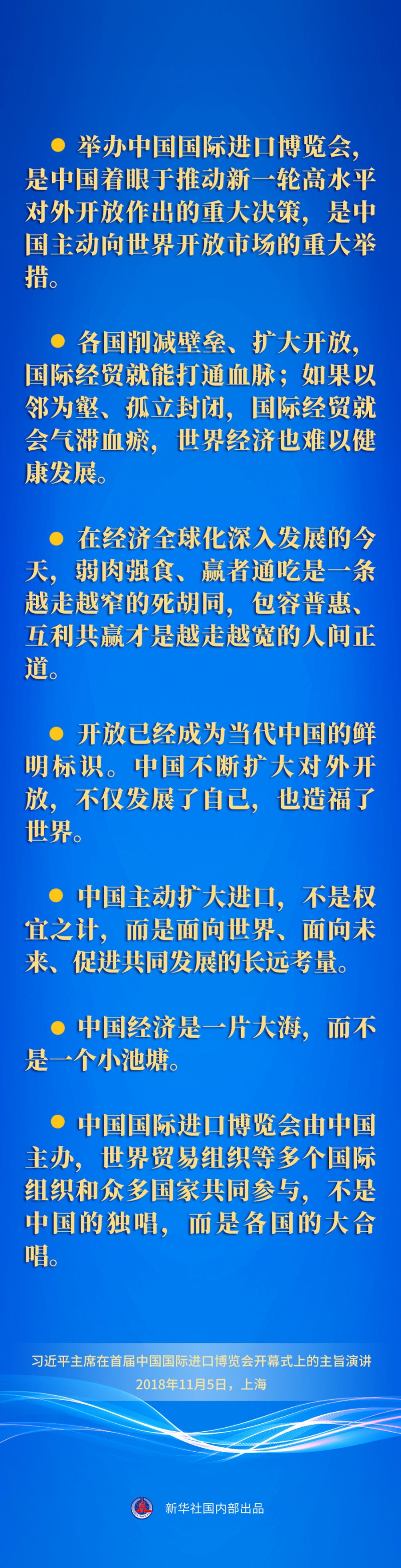 五次重要宣示,傳遞出中國堅定不移推動高水平開放的堅定決心,同世界共享市場機遇的真誠愿望,為構(gòu)建開放型世界經(jīng)濟貢獻中國力量的不變承諾。