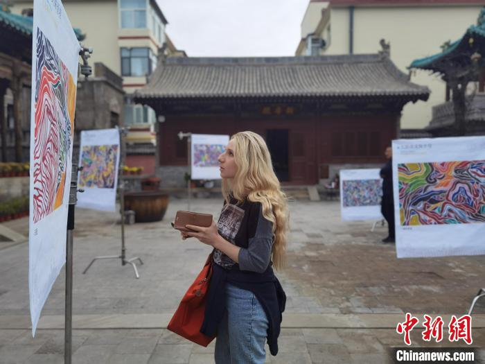 來自法國的Florie(中文名:何芳麗)是第四次來到中國,這是她此行的第12天。剛從西安來到太原的Florie聽聞文殊寺有現(xiàn)代藝術(shù)展,專程前來?!奥犝f這個古建筑有400多年的歷史,而這些抽象藝術(shù)繪畫也很有現(xiàn)代感,這種文化的交流特別有新意。”Florie說。