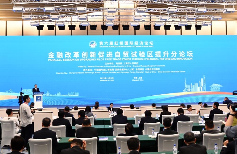 11月5日,第六屆虹橋國(guó)際經(jīng)濟(jì)論壇“金融改革創(chuàng)新促進(jìn)自貿(mào)試驗(yàn)區(qū)提升”分論壇在上海舉行。新華社記者 金良快 攝