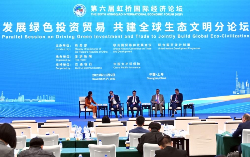 11月5日,第六屆虹橋國(guó)際經(jīng)濟(jì)論壇“發(fā)展綠色投資貿(mào)易 共建全球生態(tài)文明”分論壇在上海舉行。新華社記者 金良快 攝