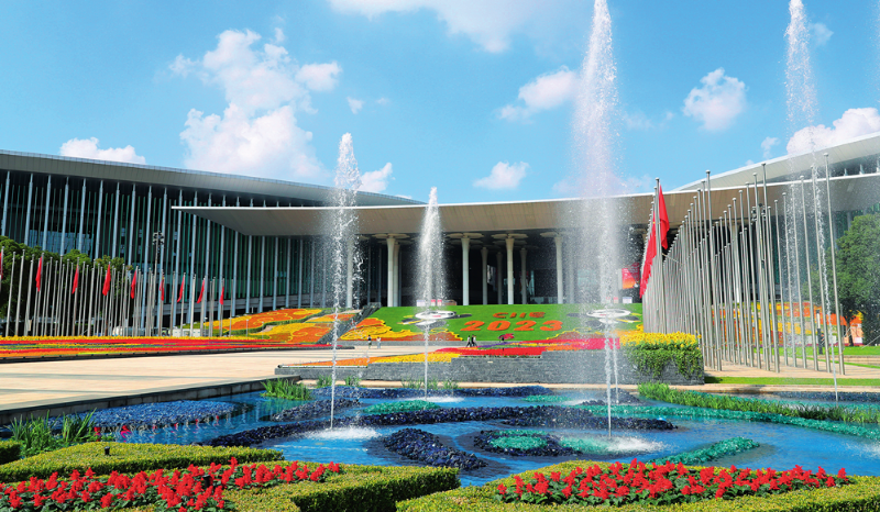 裝飾一新的國家會展中心(上海)南廣場(2023 年 10 月 24 日攝)方喆攝 / 本刊