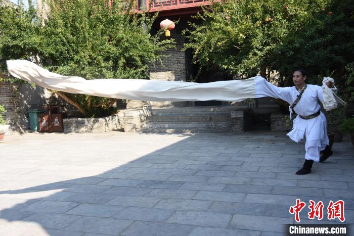 10月24日,河南商丘古城,吳青峰演示出袖動作。 王宇 攝