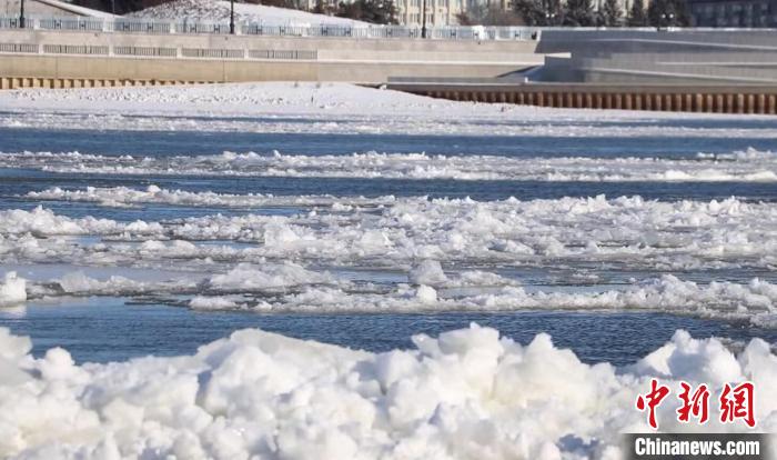 入冬氣溫降低,冰塊越凍越大,直至形成冰排,慢慢鋪滿了整個江面。在水流的推波助瀾下,江中的冰排時而“親密”時而“疏離”,碰撞在一起發(fā)出咔咔的聲響,靠近堤岸的冰排已經(jīng)緊緊“相擁”,將部分江面封凍。