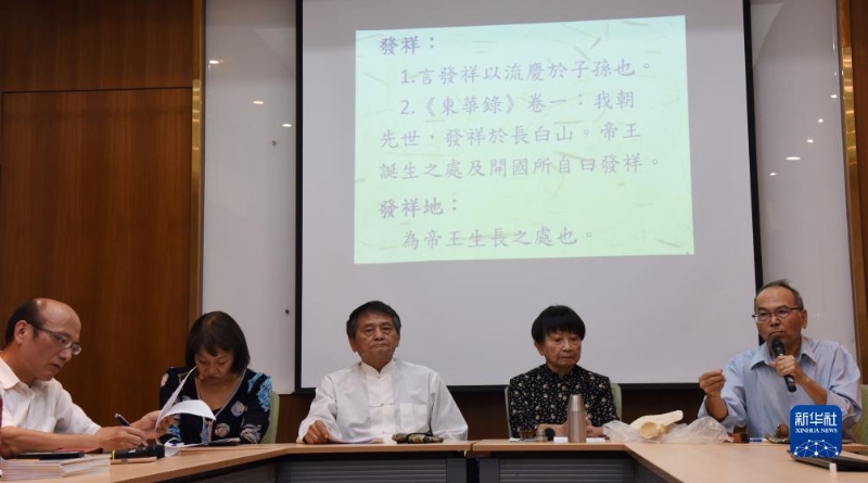 11月6日,臺灣師范大學(xué)退休教授潘朝陽(右一)在“歷史教育新三自運(yùn)動協(xié)會”記者會上發(fā)言。新華社記者 劉斐 攝