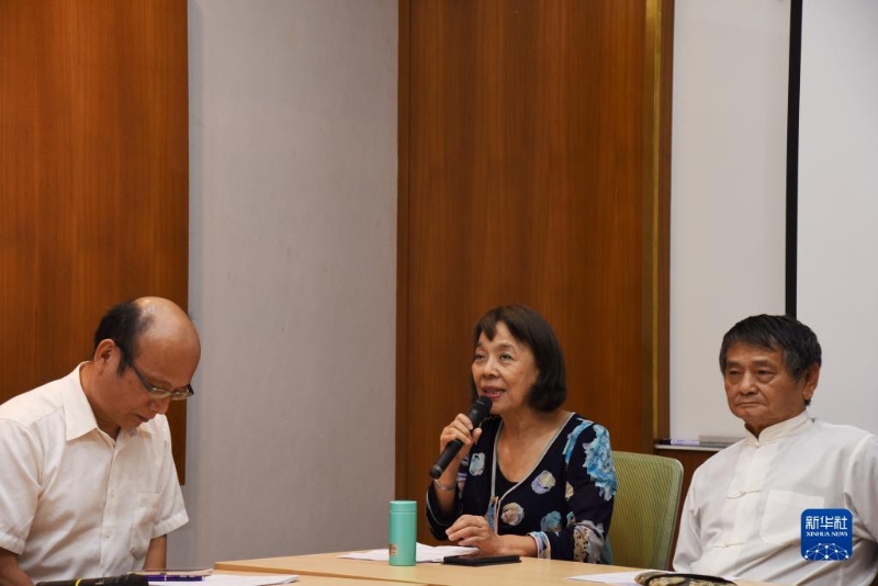 11月6日,臺灣知名作家、陽明大學(xué)(現(xiàn)陽明交通大學(xué))退休教授張曉風(fēng)(中)在“歷史教育新三自運(yùn)動協(xié)會”記者會上發(fā)言。新華社記者 劉斐 攝