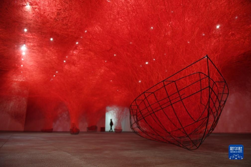 11月6日,參觀者在深圳美術(shù)館(新館)的“鹽田千春:顫動(dòng)的靈魂”展覽上觀賞藝術(shù)家鹽田千春的藝術(shù)作品。