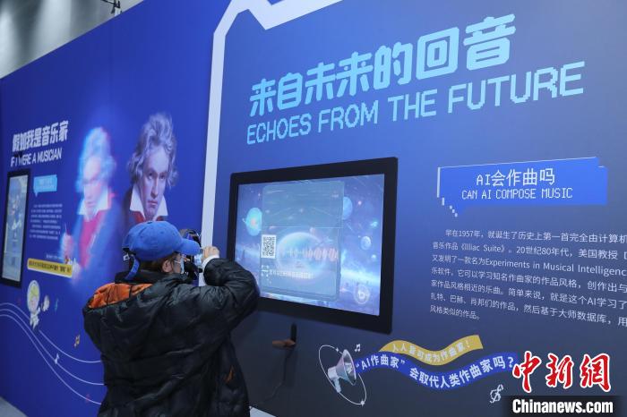 “未來(lái)音樂(lè)廳”展區(qū)則從音樂(lè)可視化、體感音樂(lè)游戲、人工智能(AI)作曲、腦波音樂(lè)等方面,展示當(dāng)代最新科技為音樂(lè)創(chuàng)造的無(wú)限可能。通過(guò)音樂(lè)可視化技術(shù),將音樂(lè)轉(zhuǎn)化為變幻的圖像,讓觀眾看到跳動(dòng)的旋律躍然眼前;根據(jù)科研數(shù)據(jù)制作的“上帝粒子”音樂(lè)等,讓觀眾欣賞到屬于科學(xué)家的獨(dú)特浪漫。