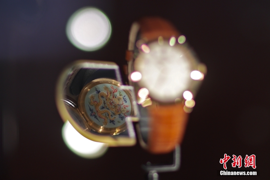 11月7日,上海,第六屆中國國際進口博覽會消費品展區(qū),歷峰集團展廳展出的江詩丹頓腕表表盤底蓋內(nèi)側(cè)飾有藍底龍形象琺瑯紋飾。第六屆進博會消費品展區(qū)共有來自76個國家和地區(qū)的500多家企業(yè)參展。其中,世界500強及行業(yè)龍頭企業(yè)57家,全球知名智能家電品牌紛紛亮相,世界時尚高端消費品、美妝及日化用品、體育用品巨頭齊聚一堂。中新社記者 盛佳鵬 攝