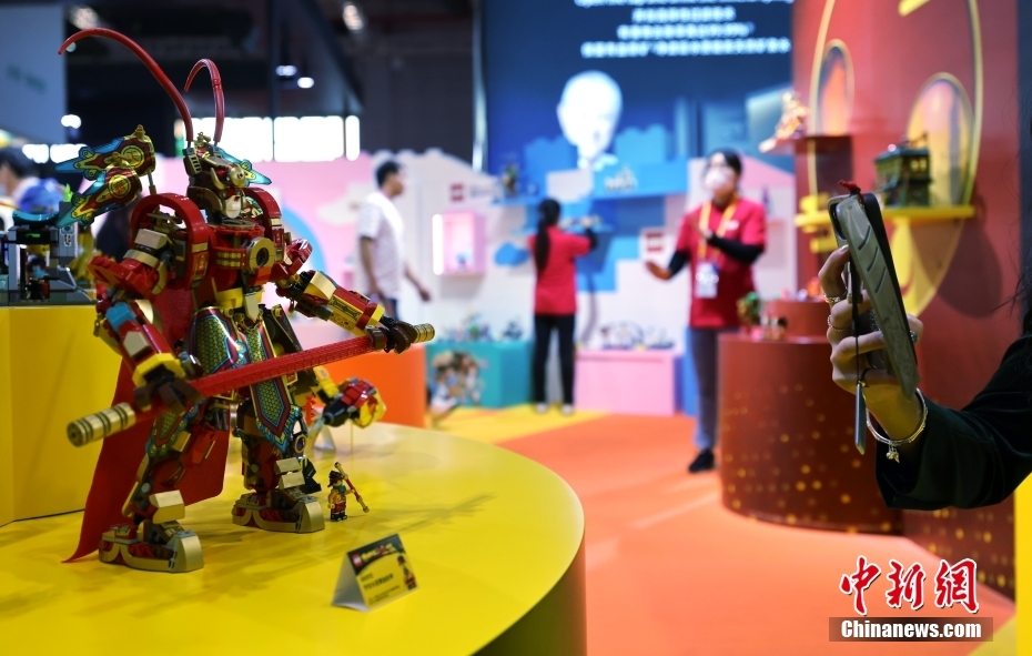 11月7日,第六屆中國國際進口博覽會在國家會展中心(上海)舉行,消費品展區(qū)樂高展臺,展出以“齊天大圣”為題材的中國元素產(chǎn)品。中新社記者 楊可佳 攝