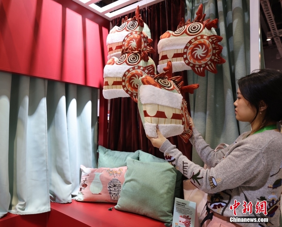 11月7日,第六屆中國國際進口博覽會在國家會展中心(上海)舉行,消費品展區(qū)宜家展臺,展出以生肖龍為題材的中國元素產(chǎn)品。中新社記者 楊可佳 攝