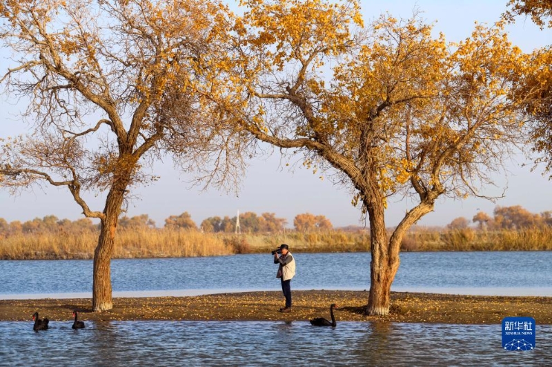 在新疆尉犁縣羅布人村寨景區(qū),一名攝影愛好者在拍攝美景(11月3日攝)。