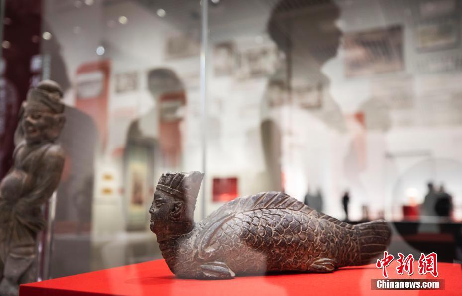 11月6日,南京博物院迎來(lái)建院90周年之際,“九十年春華秋實(shí)——南京博物院的珍藏”特展揭開(kāi)面紗,帶來(lái)一場(chǎng)精彩的文博盛宴。本次展覽以南京博物院90年院史為主線(xiàn),以40余萬(wàn)件文物收藏史為綱,釉里紅歲寒三友紋梅瓶、景德鎮(zhèn)官窯青花萬(wàn)壽紋瓷尊等數(shù)百件罕見(jiàn)的“國(guó)寶天團(tuán)”集中亮相。圖為展陳的1950年出土于江蘇江寧南唐二陵的南唐時(shí)期人首魚(yú)身俑。中新社記者 泱波 攝