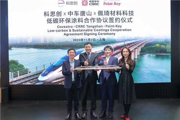 科思創(chuàng)與中車唐山機(jī)車車輛有限公司(簡(jiǎn)稱: 中車唐山公司)、蘇州佩琦材料科技有限公司(簡(jiǎn)稱: 佩琦涂料)在第六屆中國國際進(jìn)口博覽會(huì)期間簽署合作協(xié)議,共同推進(jìn)低VOC、低碳排放涂裝體系在軌道交通行業(yè)的研發(fā)與應(yīng)用,旨在為“中國速度”綠色升級(jí)保駕護(hù)航。
