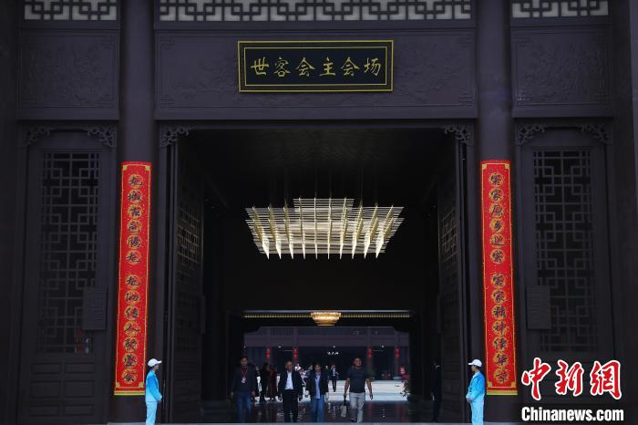 11月8日,參觀者走出世界客屬第32屆懇親大會主會場——世界客家民俗文化城。中新社記者 劉占昆 攝