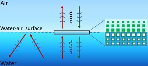 記者7日從中國科學院聲學研究所獲悉,該所噪聲與音頻聲學實驗室博士研究生周萍及其導師楊軍研究員、賈晗研究員等開展合作研究,首次將空氣中的超材料和水中的空心構型聲學超材料結合,實現(xiàn)從水到空氣的阻抗間隙,并設計出寬頻水-氣阻抗匹配層,通過仿真和實驗驗證了該匹配層在寬頻范圍內(nèi)的聲透射增強效果,從而實現(xiàn)高效的跨介質的水-氣聲通信。