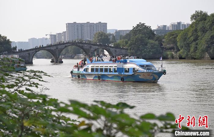 采風團從杭州拱宸橋碼頭乘船啟航,溯河北上。