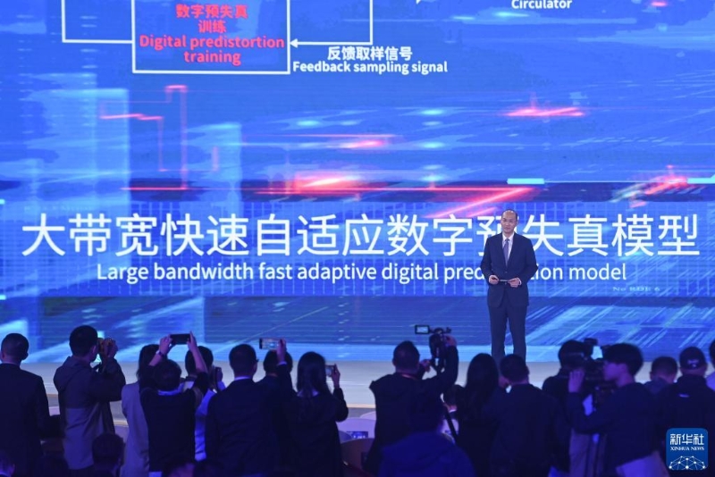 11月8日拍攝的全球首個(gè)5G Advanced-ready調(diào)制解調(diào)器及射頻系統(tǒng)發(fā)布現(xiàn)場(chǎng)。