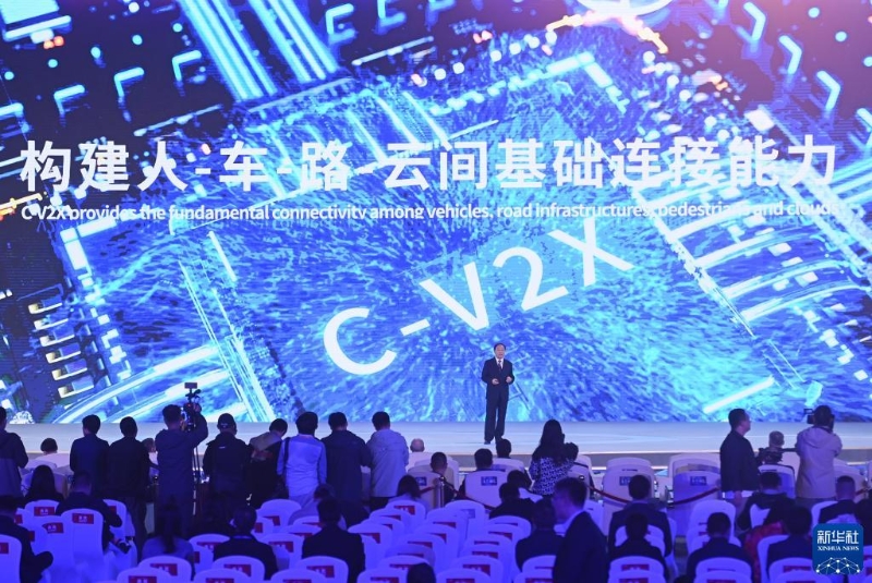11月8日拍攝的C-V2X車(chē)聯(lián)網(wǎng)通信關(guān)鍵技術(shù)研究及應(yīng)用發(fā)布現(xiàn)場(chǎng)。
