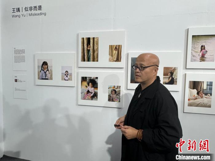 11月8日,策展人羅大衛(wèi)介紹AI影像藝術(shù)作品。 中新社記者 周健 攝