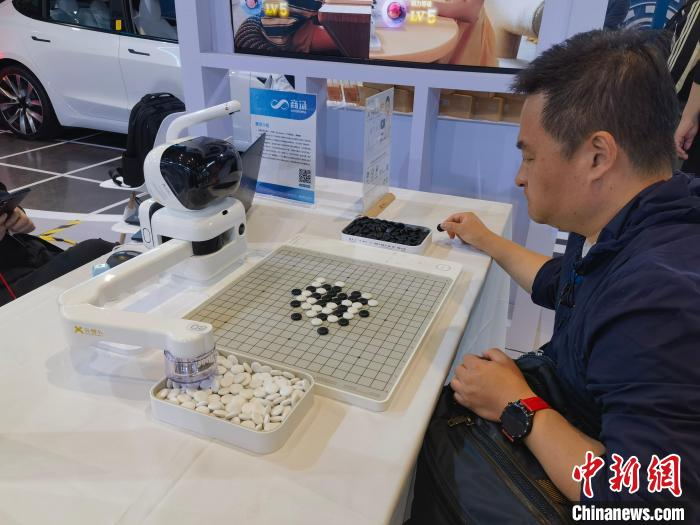 一位體驗(yàn)者與AI下棋機(jī)器人對(duì)弈。王逸飛 攝