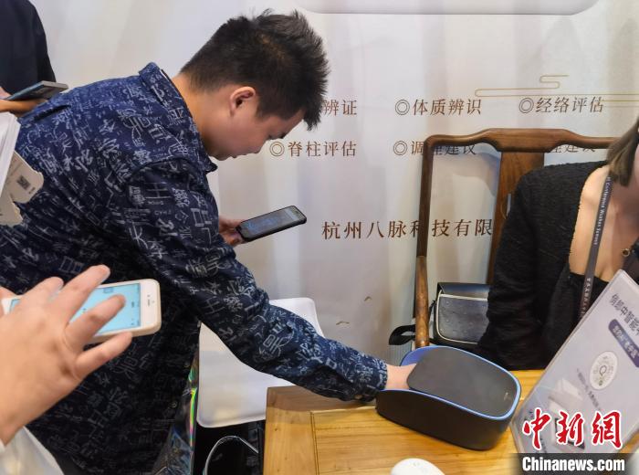 參觀者體驗(yàn)AI“老中醫(yī)”診脈。王逸飛 攝
