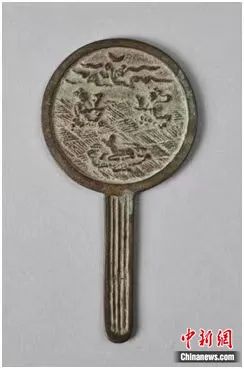 國(guó)家民委主辦的“鑄牢中華民族共同體意識(shí)文物古籍展”正在民族文化宮展出。圖為展覽中展出的以中原文化紋樣為飾的金銅鏡。民族文化宮供圖