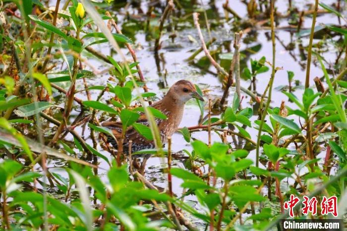 中新網(wǎng)杭州11月8日電 (錢晨菲)7日,記者從杭州市生態(tài)環(huán)境局獲悉,近日,當(dāng)?shù)厍嗌胶B類調(diào)查員執(zhí)行冬季調(diào)查時(shí),在臨安青山湖北岸的水草灌叢里發(fā)現(xiàn)一只體型特別小的秧雞踩在水草的根莖部覓食,記錄并確認(rèn)為小田雞。經(jīng)杭州市鳥類與生態(tài)研究會確認(rèn),小田雞為杭州臨安鳥類新記錄。