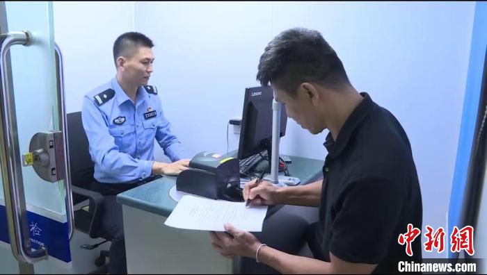 平潭邊檢站移民管理警察為臺(tái)胞辦理快捷通道信息采集備案?!“字颈?攝