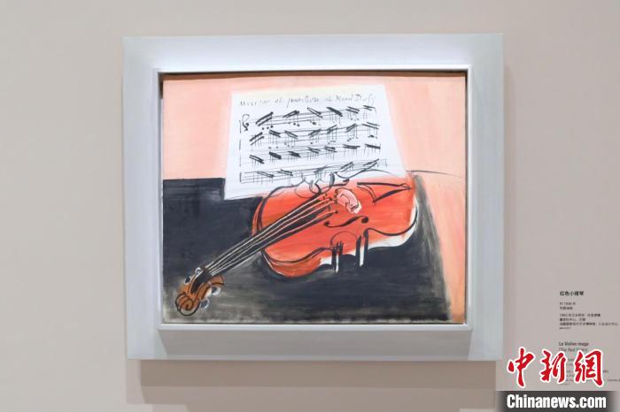 拉烏爾·杜菲《紅色小提琴》,作品中有題字“拉烏爾·杜菲的音樂(lè)與繪畫(huà)”?!≈行戮W(wǎng)記者 王笈 攝