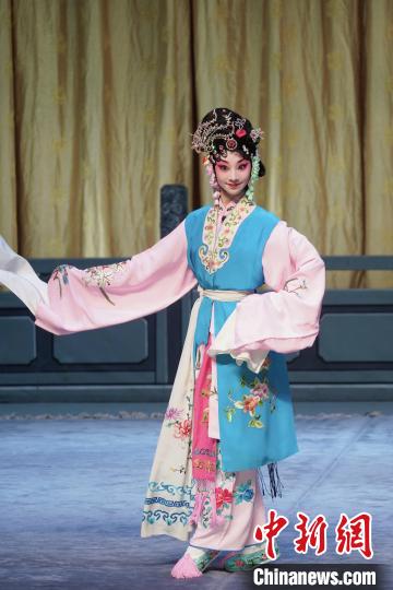 朱鹮一身淡黃色戲服,扮相清新俏麗,舉止之間盡顯京韻。趙曉 攝