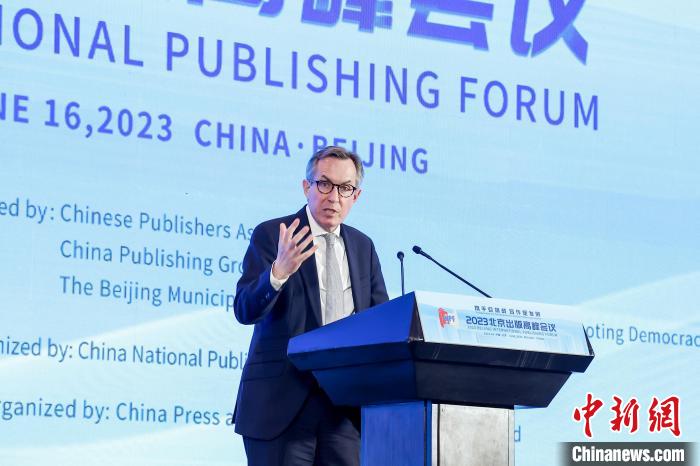 貝謹(jǐn)立在今年舉行的北京出版高峰會(huì)議上發(fā)表演講。(受訪(fǎng)者供圖)