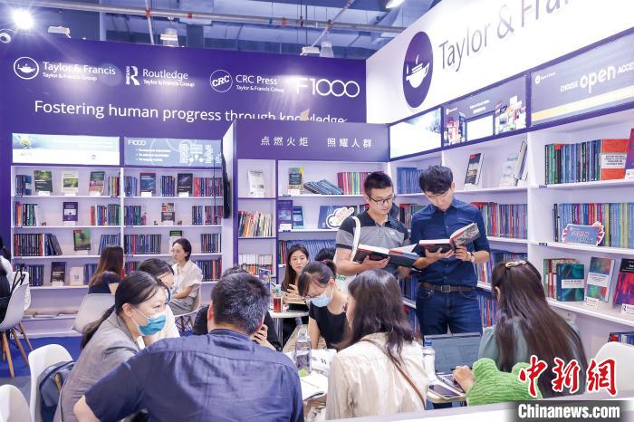 中國(guó)讀者在北京國(guó)際圖書(shū)博覽會(huì)Taylor& Francis展位閱讀和交流。(受訪(fǎng)者供圖)
