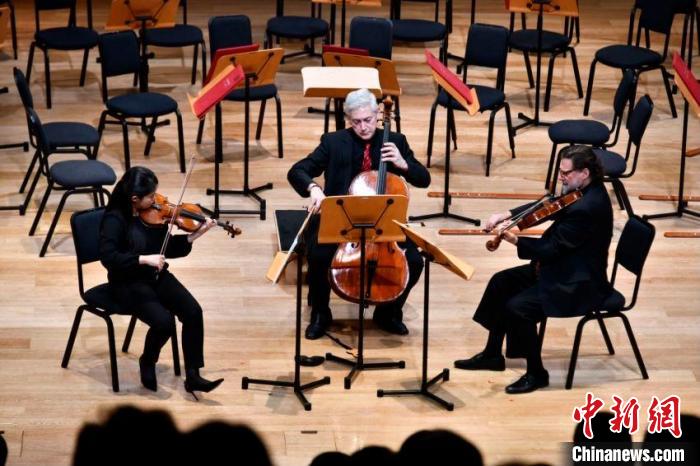 音樂會上,費城交響樂團音樂家?guī)砹素惗喾摇禛大調(diào)第三弦樂三重奏》。(天津茱莉亞學院 供圖)
