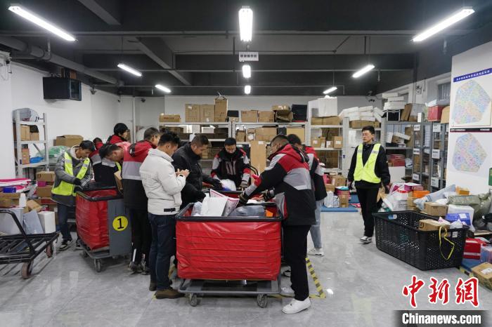 11月11日,在青海省西寧市一快遞網(wǎng)點,快遞小哥有條不紊地進行快遞裝卸、分揀、掃碼、派送等工作。據(jù)悉,今年西寧市“雙十一”包裹量高峰預(yù)計在11月11日至18日期間,全市每日進出港郵快件將達100萬件左右。