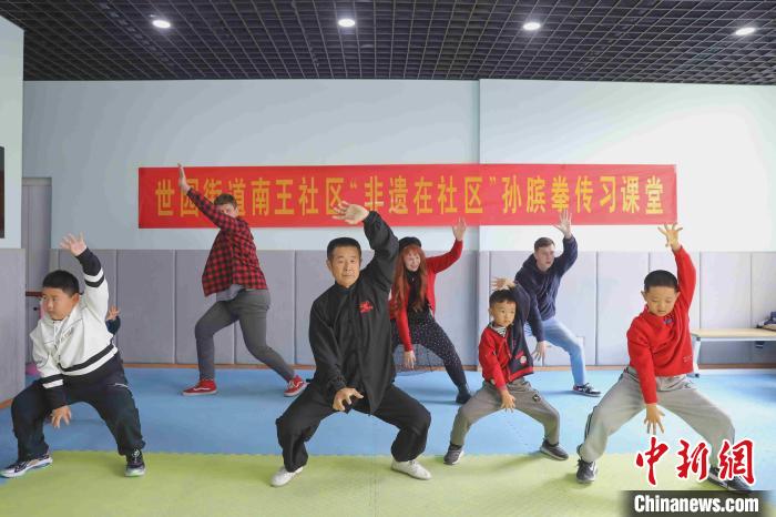 11月11日,來(lái)自英國(guó)、愛(ài)爾蘭等國(guó)家和地區(qū)的外國(guó)友人來(lái)到山東省青島市李滄區(qū)的一處新時(shí)代文明實(shí)踐站,走進(jìn)“非遺在社區(qū)”孫臏拳傳習(xí)課堂,體驗(yàn)中國(guó)傳統(tǒng)武術(shù)魅力。