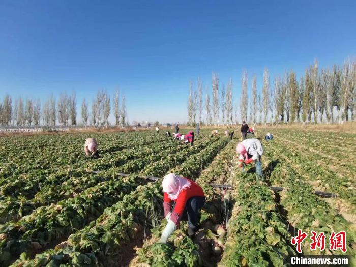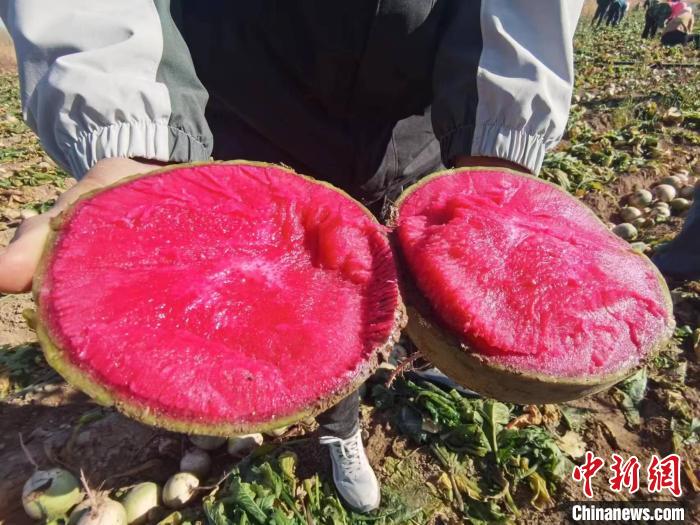 中新網(wǎng)銀川11月10日電 (記者 李佩珊)冬日來臨,北方多地氣溫已低至零下,可“塞上江南”寧夏大片田地里的喜訊依然沒斷。這幾天,銀川靈武市崇興鎮(zhèn)臺子村里50多畝“心里美”蘿卜喜獲豐收。蘿卜地里,村民們正忙碌地拔蘿卜、割葉子、挑揀、裝袋、裝車……一片熱火朝天的豐收景象呈現(xiàn)在眼前。