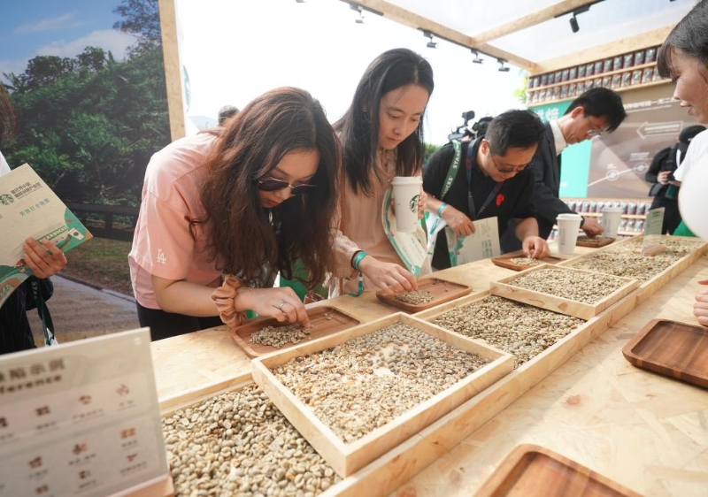 9月19日,在星巴克中國咖啡創(chuàng)新產(chǎn)業(yè)園開園儀式現(xiàn)場,來賓在體驗(yàn)挑揀咖啡生豆。當(dāng)日,星巴克中國咖啡創(chuàng)新產(chǎn)業(yè)園在江蘇昆山落成投產(chǎn)。